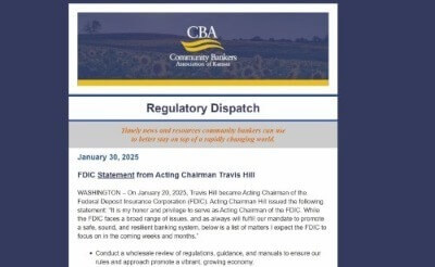 In the ever-evolving landscape of banking regulations, staying informed is not just beneficial, it’s essential. CBA’s Regulatory Dispatch is designed specifically for community bankers who are committed to serving their local communities with confidence and integrity. Each week, this invaluable resource delivers timely compliance news and insights directly to your inbox, allowing you to navigate the complexities of regulations with ease. By keeping you updated, we empower you to enhance your operational efficiency, ensuring that you can focus on what truly matters: fostering strong relationships within your community and supporting local economic growth. Partner with CBA and let us help you turn compliance challenges into opportunities for success.